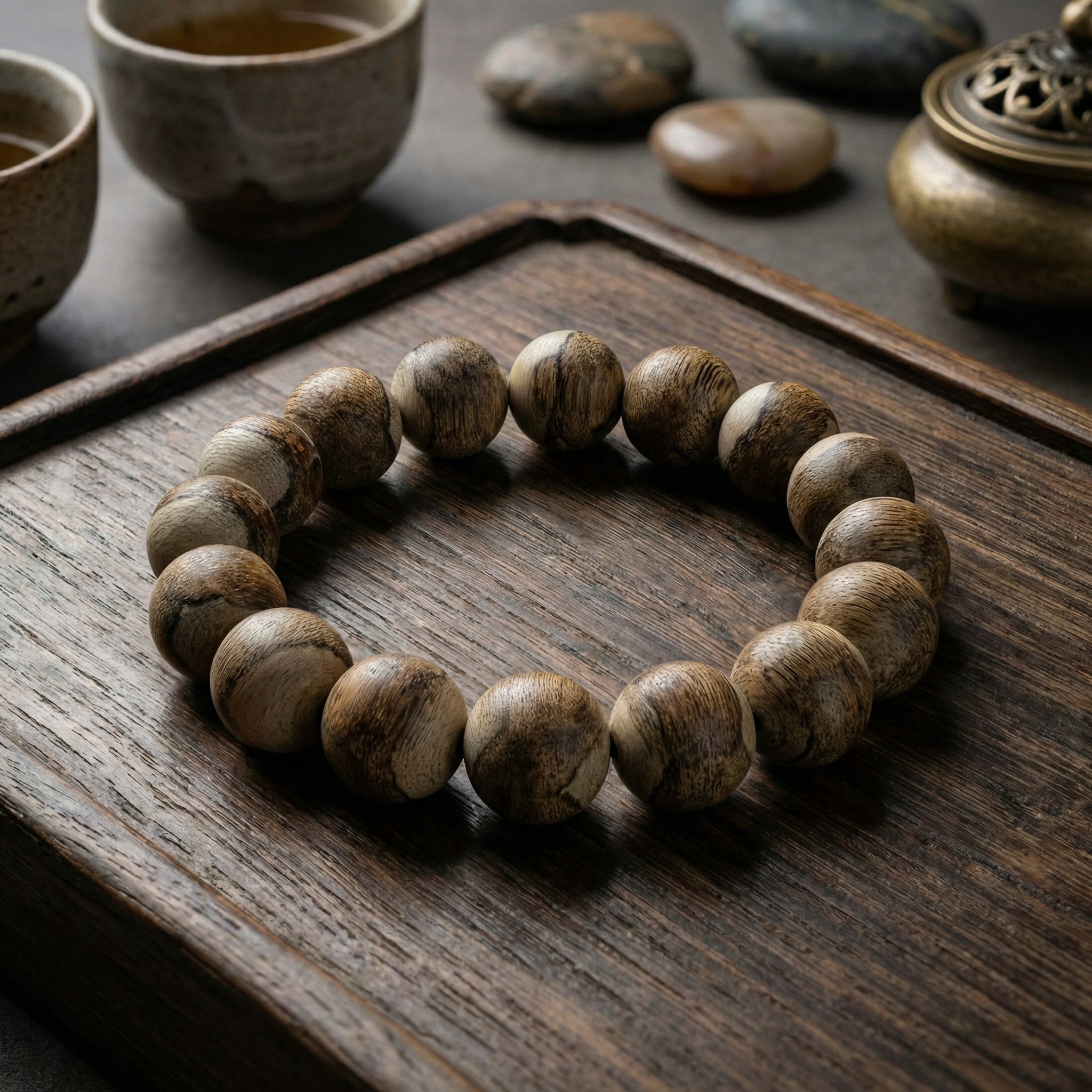 Rustic Raw Vietnamese Agarwood Bracelet – Natural Wood Grain