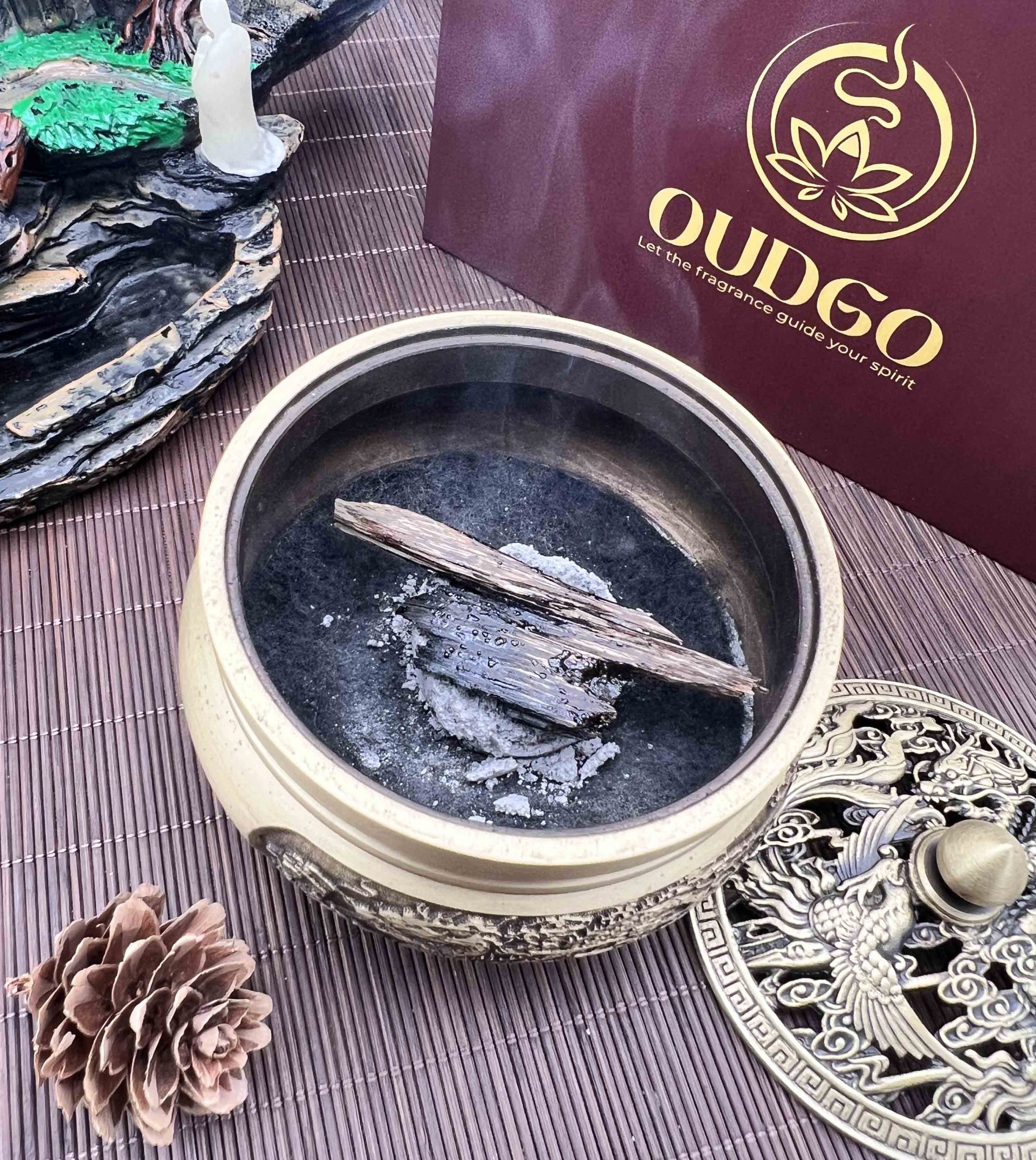 Experience Oudgo’s Vietnamese Ant Nest Agarwood—choose a copper incense burner for a luxurious touch, a porcelain burner for delicate elegance, or a wooden one for a rustic feel. Pair it with charcoal or an electric burner to suit your lifestyle.