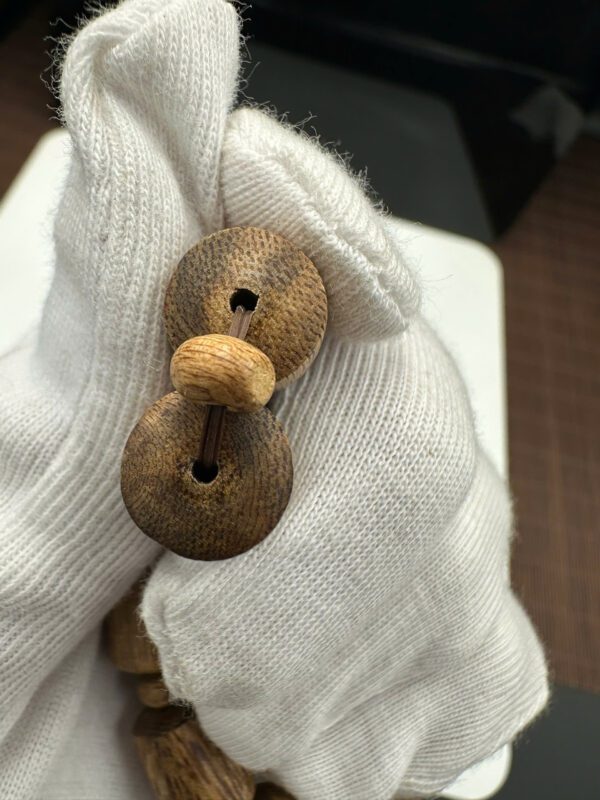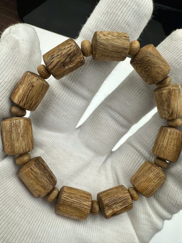 This specific Agarwood bracelet VietNam features a unique “bamboo-style” cylindrical cut, a design favored by those who appreciate a blend of modern aesthetics and traditional significance. Each bead is a masterpiece of nature: