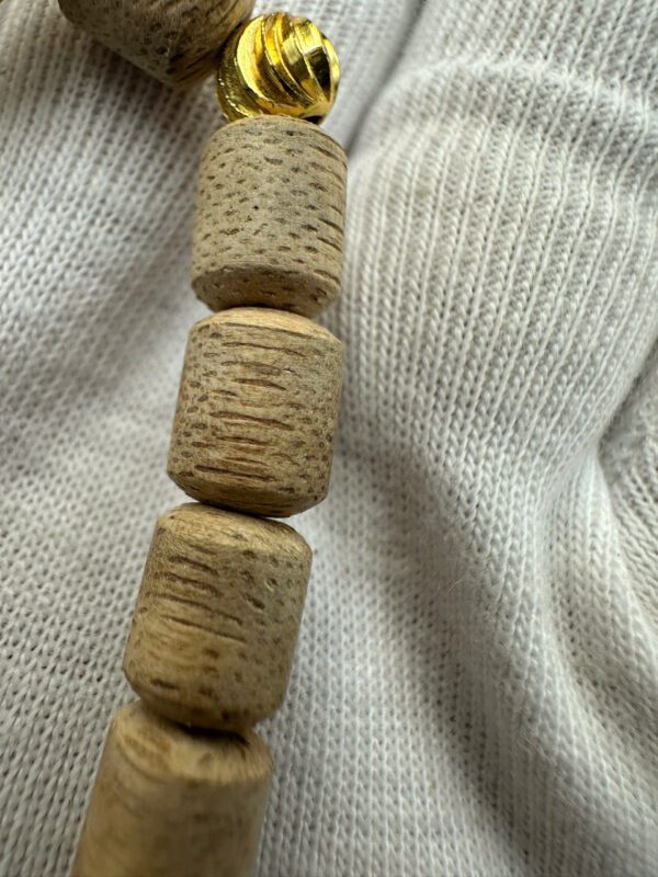 This particular piece from our Agarwood Bracelets Vietnam collection showcases the raw, organic beauty of authentic Oud. Upon close inspection, the wood beads reveal a stunning cylindrical barrel shape, a departure from traditional round beads that offers a modern yet timeless appeal.